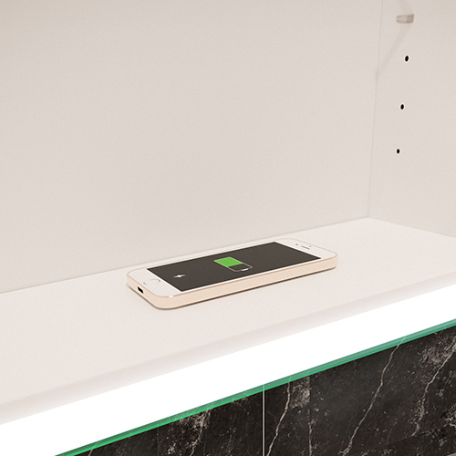 Taip pat rinkitės iš papildomų patogumų. Prie elektros lizdo galėsite prijungti plaukų formavimo įrenginius, o indukcinis įkroviklis pravers įkraunant išmanųjį telefoną.